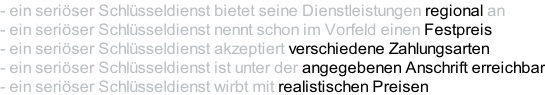 Schlüsseldienst de Groot 02236 - 387 96 45 Ihr zuverlässiger Schlüsseldienst für Türöffnungen aus dem Kölner Süden .de - Ein Service-Unternehmen vom Immobilienbüro de Groot Immobilienmakler Köln | Immobilienbüro de Groot | Immobilienmakler in Köln, Bonn und Umgebung - Immobilienvermarktung Köln - Immobilienmakler Köln - Immobilien Köln Schlüsseldienst Türnotöffnungen Türöffnungen Schlüsselnotdienst Aufsperrdienst Schlüsseldienst de Groot Immendorfer Hauptstraße 15 50997 Köln Inh. Sebastian de Groot Tel: 02236 - 387 96 45 E-Mail: info@schluesseldienst-degroot.de Ein Service-Unternehmen vom Immobilienbüro de Groot Impressum Leistungen Kontakt Immobilienbüro de Groot Unsere Zahlungsmöglichkeiten - Barzahlung vor Ort - EC-Zahlung vor Ort - Zahlung mit Kreditkarte (zzgl. 5,00 €) - Überweisung (Zahlungsziel 10 Tage) - Überweisung per PayPAl Wir bieten Ihnen nachfolgende Zahlungsmöglichkeiten an: Schlüsseldienst Türnotöffnungen Türöffnungen Schlüsselnotdienst Aufsperrdienst Schlüsseldienst Türnotöffnungen Türöffnungen Schlüsselnotdienst Aufsperrdienst Wir öffnen Ihre Türe zum Festpreis - ohne wenn und aber ! Da Sie sicherlich nicht den Ausschluss aus Ihrer Wohnung geplant haben, öffnen wir Ihre Türe auch ohne eine sofortige Barzahlung vor Ort. Zugefallene Türe - eine Tür welche nicht abgeschlossen ist Im diesen Fall, einer zugefallenen Tür, öffnen wir Ihnen diese in ca. 95% aller Fälle ohne eine Beschädigung von Schloss, Zylinder oder Türe - natürlich zum Festpreis. Im Regellfall ist ein Monteur in ca. 15 - 30 Minuten vor Ort. Wir helfen wir Ihnen schnell und zum Festpreis inkl. Anfahrt und MwSt. - keine weiteren Kosten - In den meisten Fällen steckt der Schlüssel von Innen und Sie bekommen trotz einem Zweit- schlüssel die Türe nicht auf. Dies liegt an einer fehlenden „Not- und Gefahrenfunktion“. Diese Türe öffnen wir Ihnen schnell zum günstigen Festpreis. Sollte Ihr Schlüssel abgebrochen sein und noch im Zylinder feststecken, können wir Ihnen diesen ohne weitere Probleme entfernen und die Türe öffnen. Schnell vor Ort ! Köln, Bonn, Brühl, Hürth, Frechen, Wesseling und Bornheim sind aufgrund unserer Lage im Kölner Süden (Köln Rodenkirchen, OT Immendorf) schnell erreicht ! 15 - 30 Min. vor Ort ! Im Regelfall erreichen wir Sie innerhalb von 15 - 30 Min.  Schon am Telefon können wir Ihnen eine genaue Einschätzung geben, wann wir bei Ihnen sind. Verschlossene Türe - eine Tür welche abgeschlossen ist Wir helfen wir Ihnen schnell und zum Festpreis inkl. Anfahrt und MwSt. - keine weiteren Kosten - Ist Ihr Schlüssel beim aufschliessen abgebrochen ? Ärgerlich, jedoch kein Problem für unsere Monteure. Wir entfernen das Bruchstück und öffnen Ihre Türe zeitnah. Wenn Ihr Schlüssel gestohlen wurde tauschen wir Ihnen nach der Türöffnung das Zylinderschloss, damit niemand unbefugt eintreten kann. Wir führen ständig div. Zylinderschlösser mit uns - ab 9,00 € inkl. Mwst. Schlüsseldienst Türnotöffnungen Türöffnungen Schlüsselnotdienst Aufsperrdienst Unser Schlüsselnotdienst Wer sind wir ? - Wohnungstüren - Was öffnen wir ? - Haustüren - - Fenster - - Kellertüren - - Briefkästen - - Zimmertüren - - Wir öffnen keine Autos oder Tresore - Wie erkennen Sie einen seriösen Schlüsseldienst ?